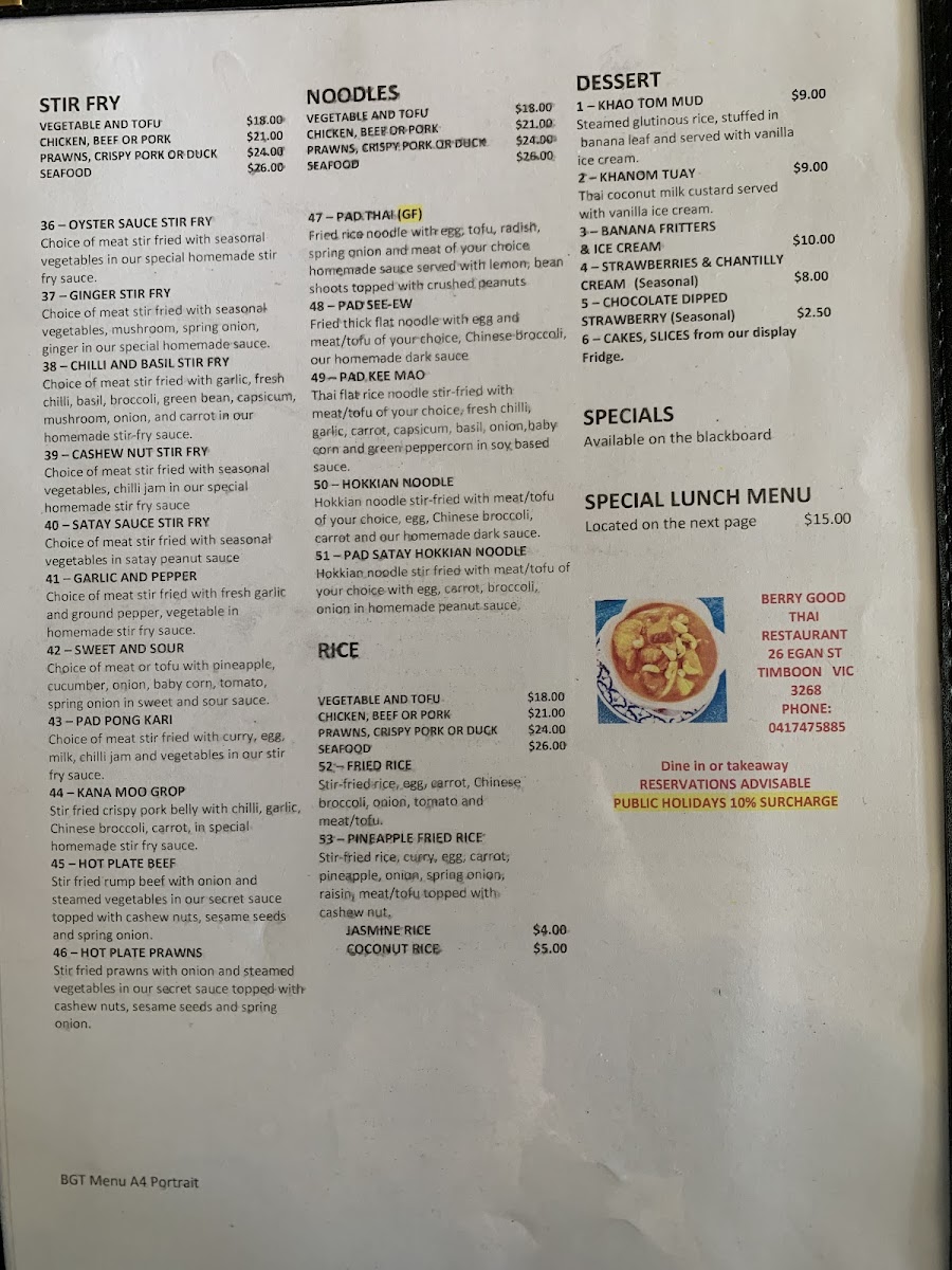 Welcome to Berry World PYO Strawberries and Berry Good Thai Restaurant, a hidden gem located in Timboon, Victoria. Nestled against a picturesque strawberry farm, this charming eatery offers an authentic Thai dining experience that is not to be missed. The menu boasts a diverse array of dishes, each bursting with flavor, from the sizzling hot plate beef to the classic chicken pad Thai and crispy spring rolls. Guests have raved about the restaurant’s vibrant ambiance and the friendly staff, making every visit a delight.